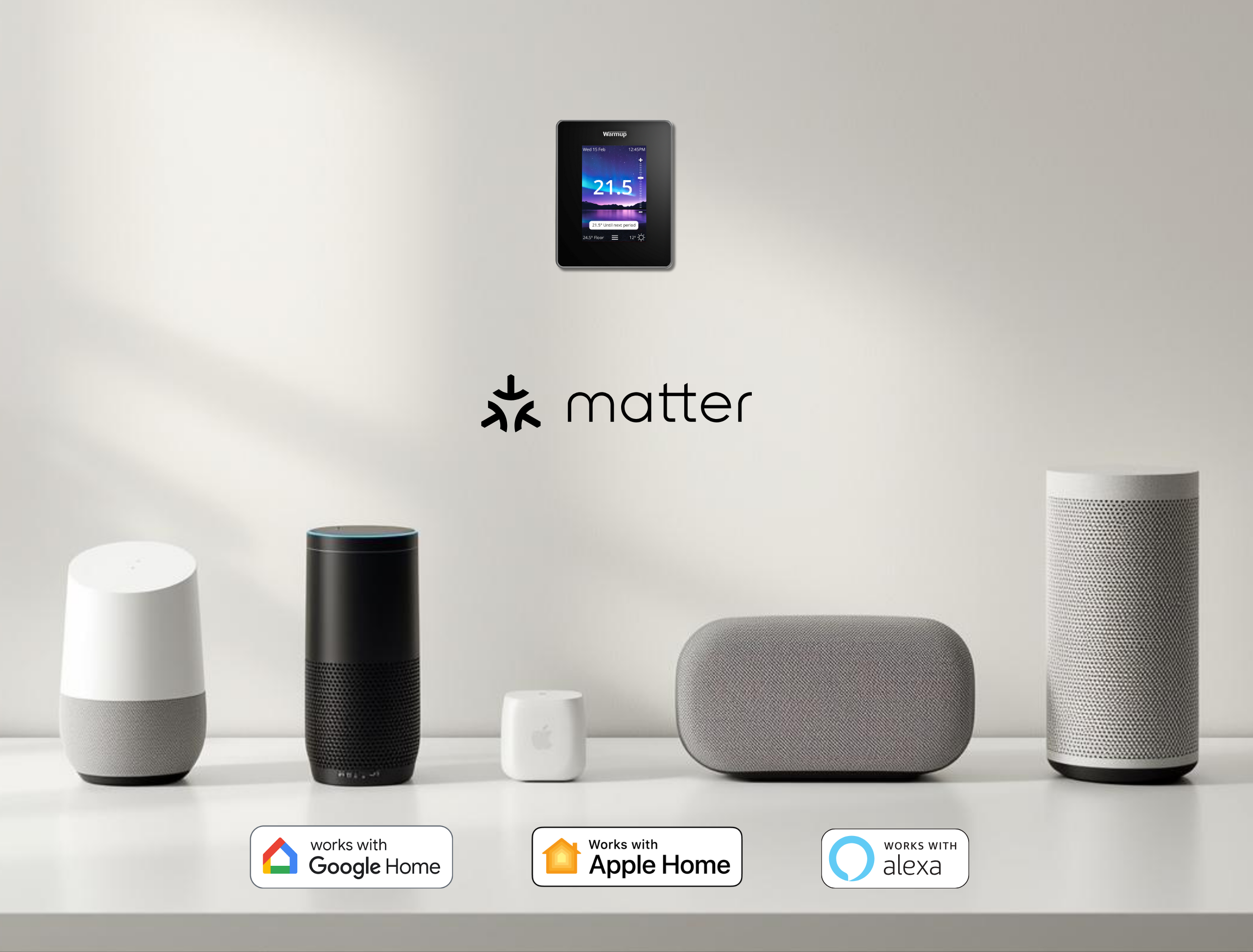 Geavanceerde Matter-technologie maakt het mogelijk om verwarmingssystemen te integreren in een slimme woonomgeving. Bediening is mogelijk via elk Matter-compatibel apparaat, waaronder Apple Home, Google Home en Amazon Alexa. Verwarming kan worden geregeld via spraakopdrachten of geautomatiseerde routines vanaf één platform, wat zorgt voor een gestroomlijnde ervaring.